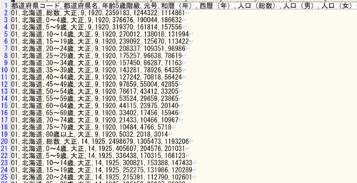 S3に格納されているCSVファイルのデータをRedshiftにCOPYコマンドで投入する必要があったので備忘のために書いておきます。 サンプルデータは何でもよかったんですが、なんとなくこれを使いました。 >年齢(5歳階級),男女別人口-都道府県(大正9年~平…